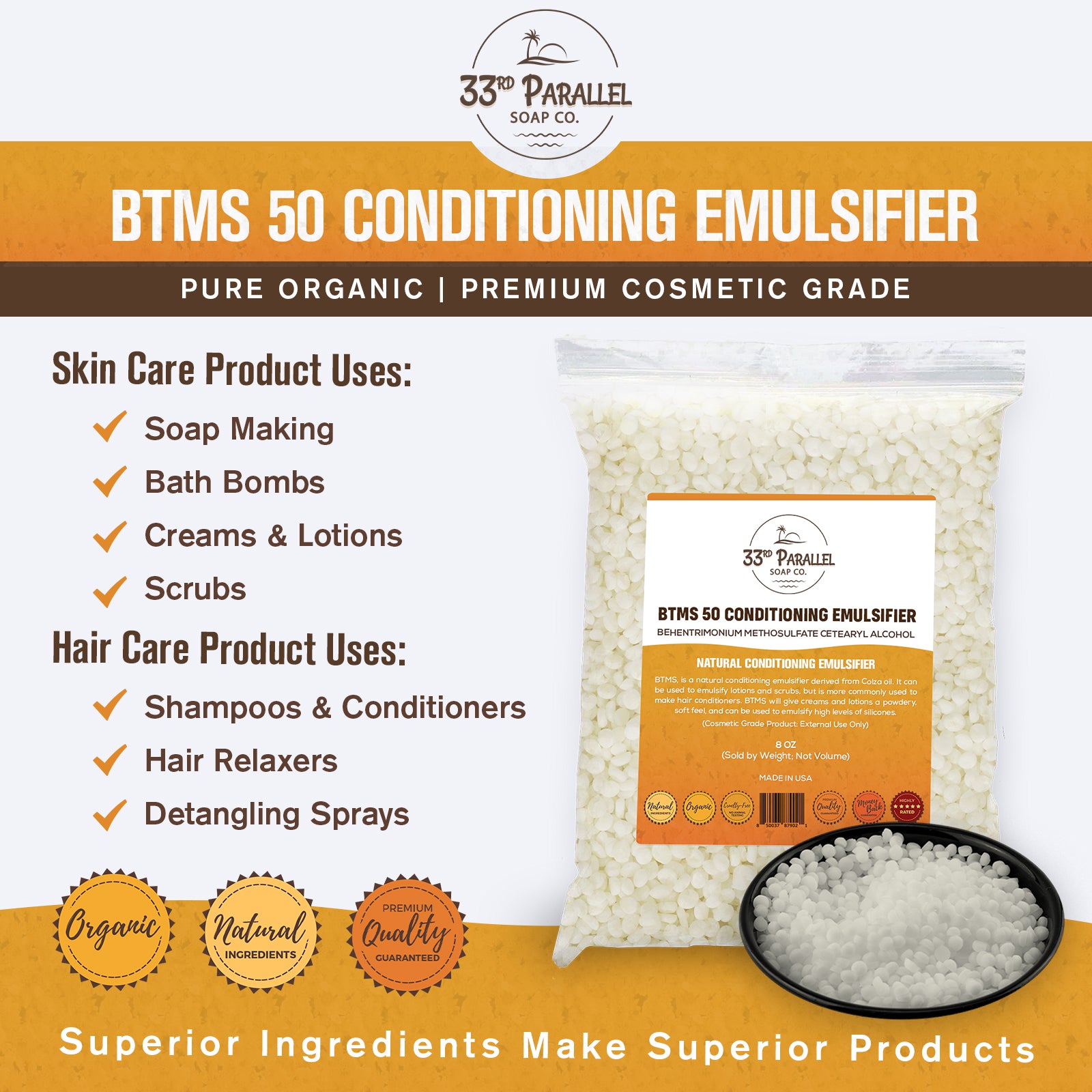 A gentle emulsifying and conditioning agent, perfect for both hair and skin applications. It leaves skin feeling silky smooth and conditions hair like no other emulsifier available. Leaving skin with a lovely, silky and powdery feel, BTMS-50 is a must-have for luxury cosmetic formulations.