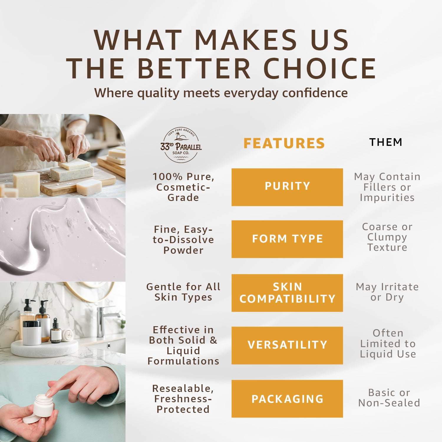 Premium Grade: 33rd Parallel Soap Co guarantees purity and quality.