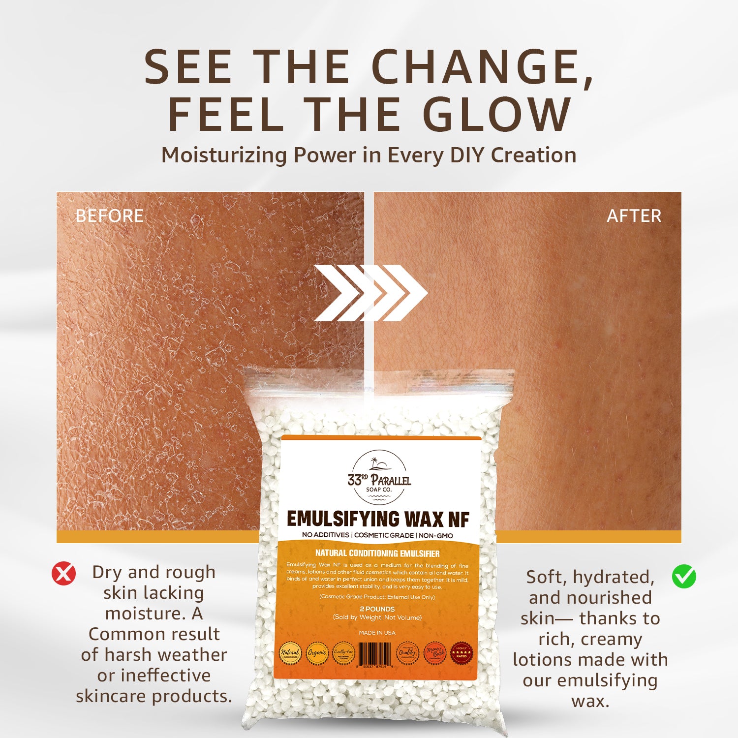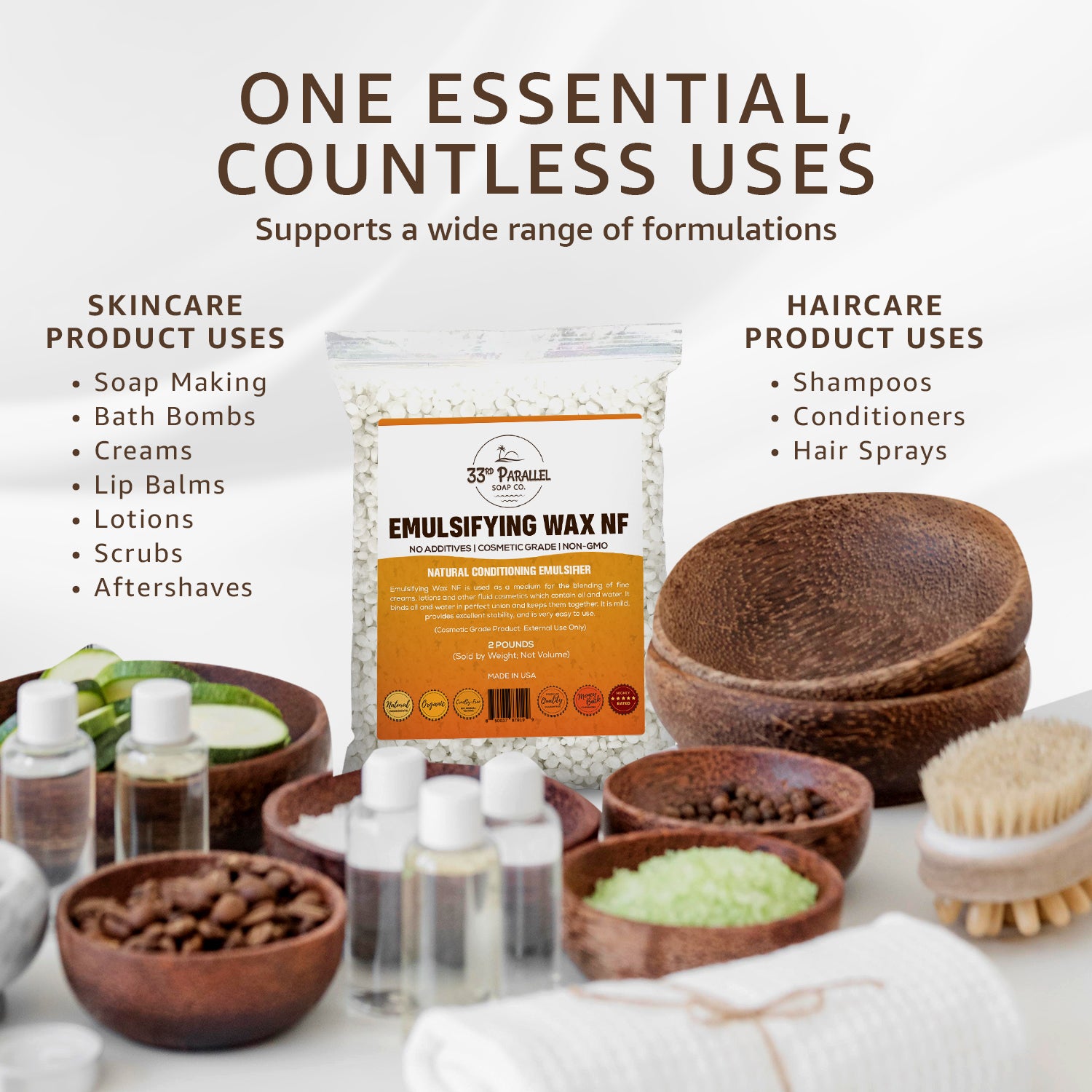 Our premium, cosmetic grade Emulsifying Wax is 100% plant-derived and non-GMO. A gentle emulsifier and conditioner, it blends oils and water seamlessly, leaving skin silky smooth and hair soft and manageable. Ideal for lotions, creams, scrubs, and shampoos.