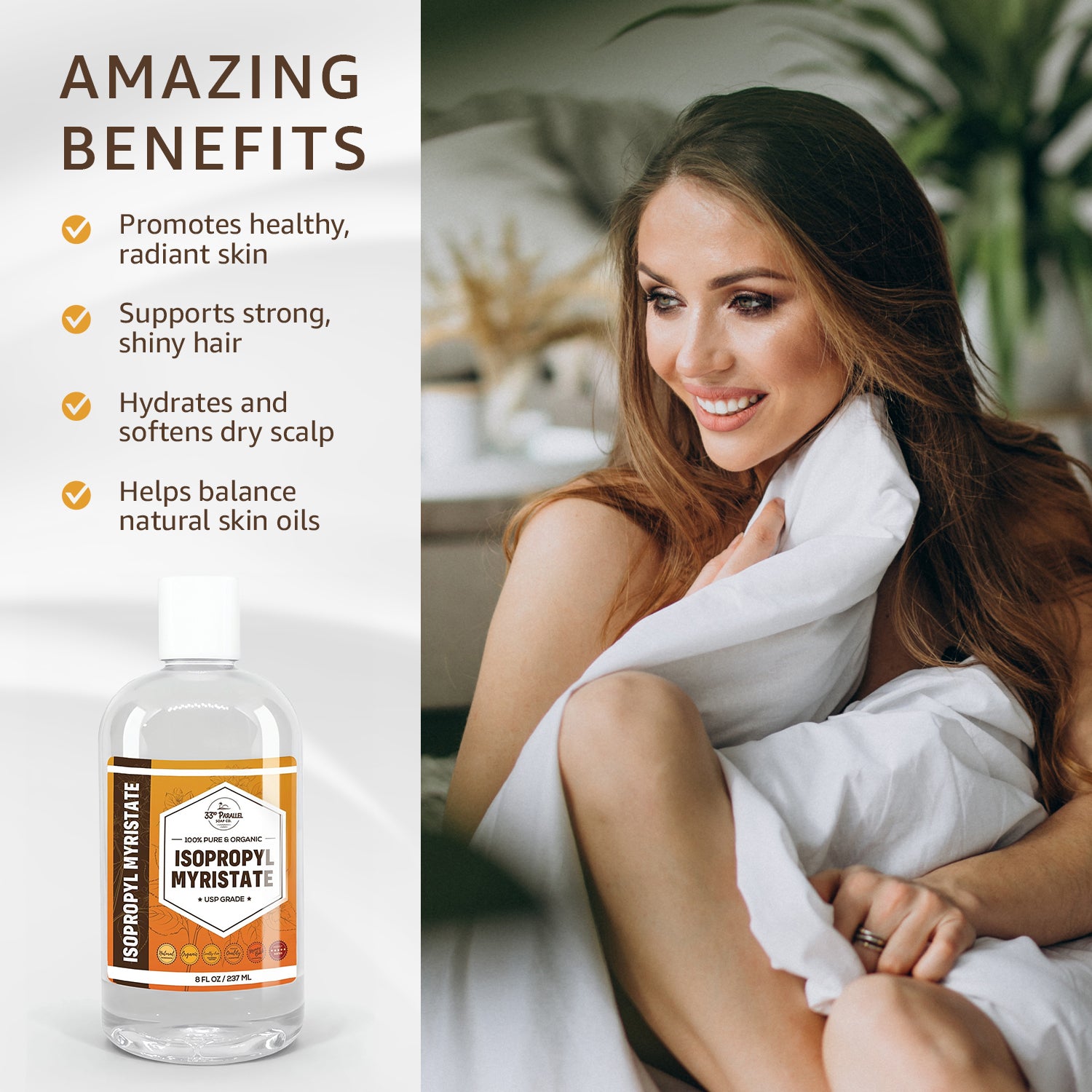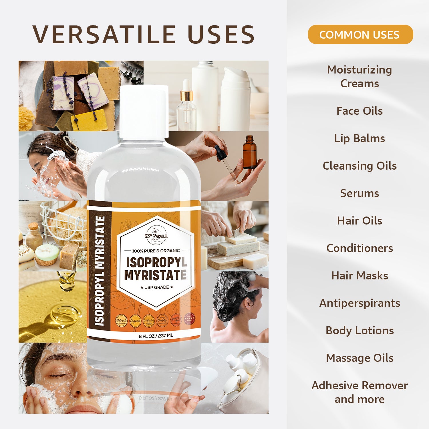 Our premium and all-natural Isopropyl Myristate contributes to the creation of a luxurious and smooth texture, akin to silk and velvet, in the formulation of cosmetics, particularly in personal skincare products.