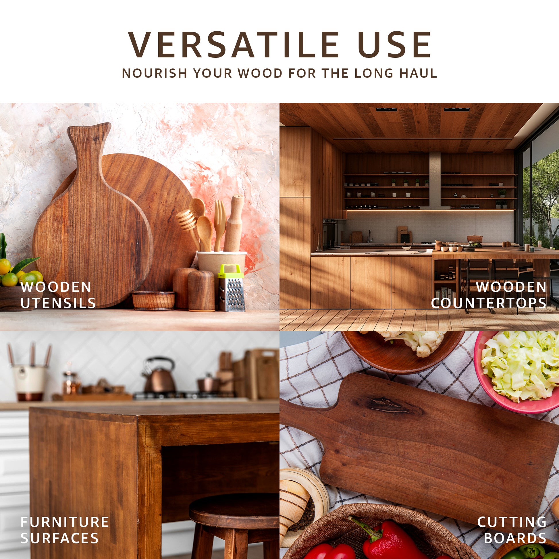 Perfect for cutting boards, butcher blocks, charcuterie boards, salad bowls, and wooden countertops