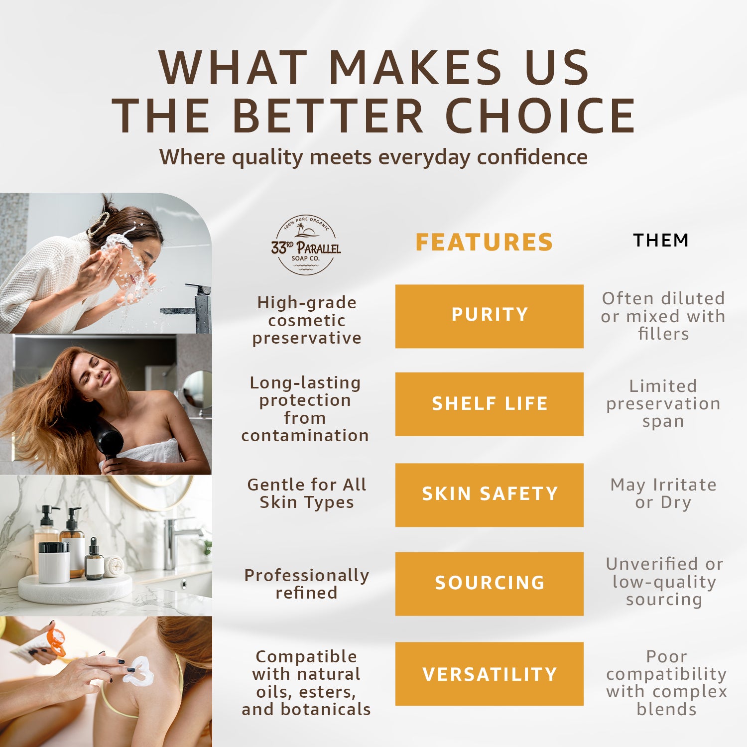 Body Butters & Scrubs: Protects rich, oil-based formulations from spoilage.