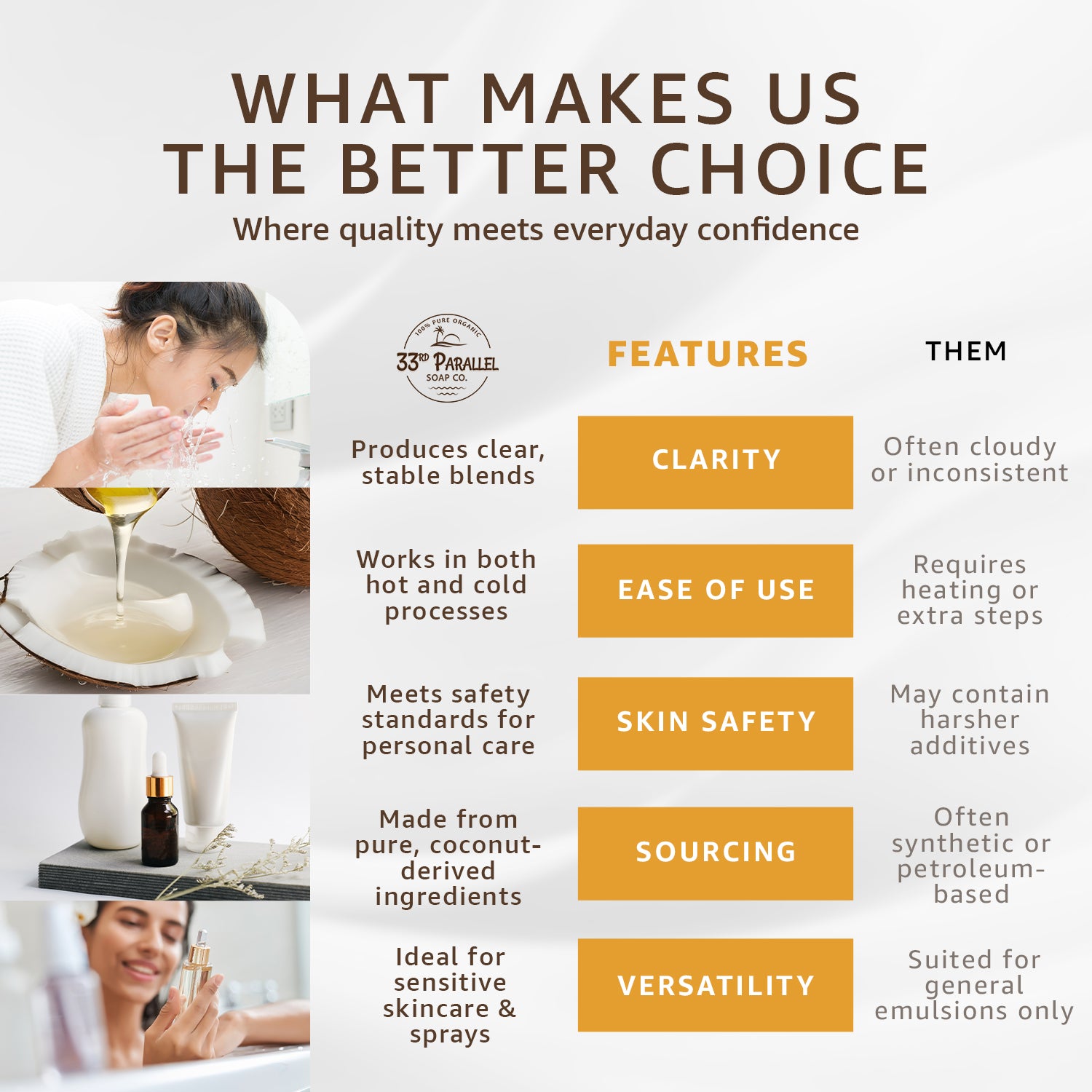 Strong Solubilizer & Emulsifier: Blends essential and carrier oils evenly into water-based formulas.