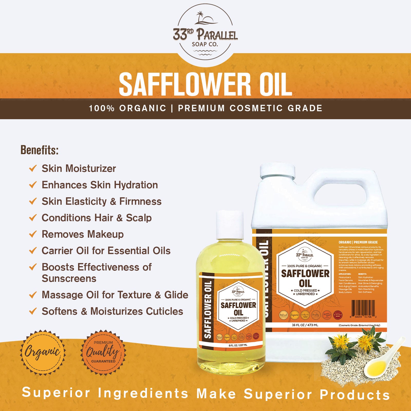 100% Pure and Organic: Cold-pressed, non-GMO, and free from additives or synthetic ingredients.