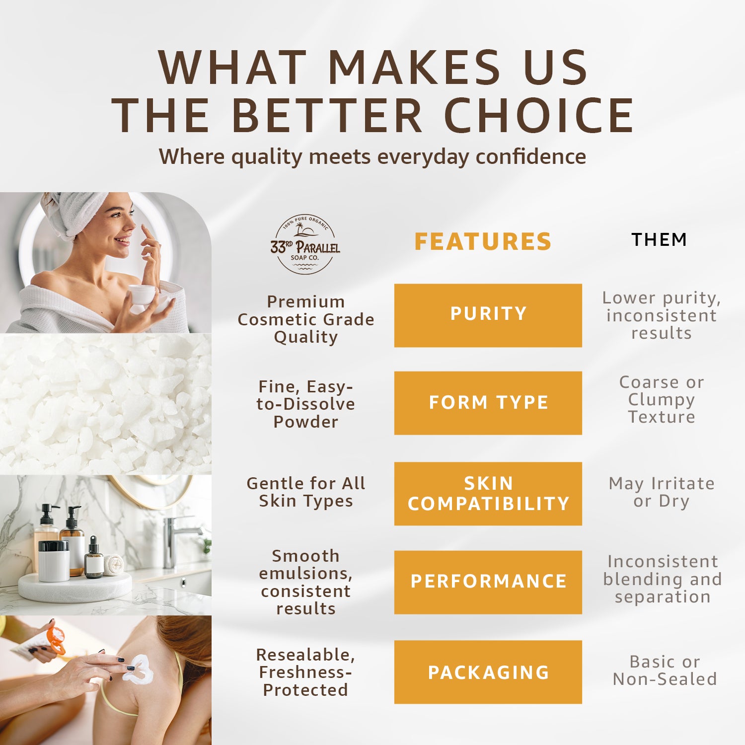 Premium Grade: Professional-quality Stearic Acid with 33rd Parallel Soap Co satisfaction guarantee.